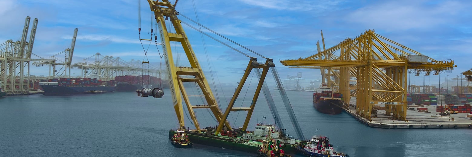 ميناء جبل علي ينجح في نقل أربعة مفاعلات ضخمة لإنتاج البولي إيثيلين باستخدام رافعة عائمة متطورة