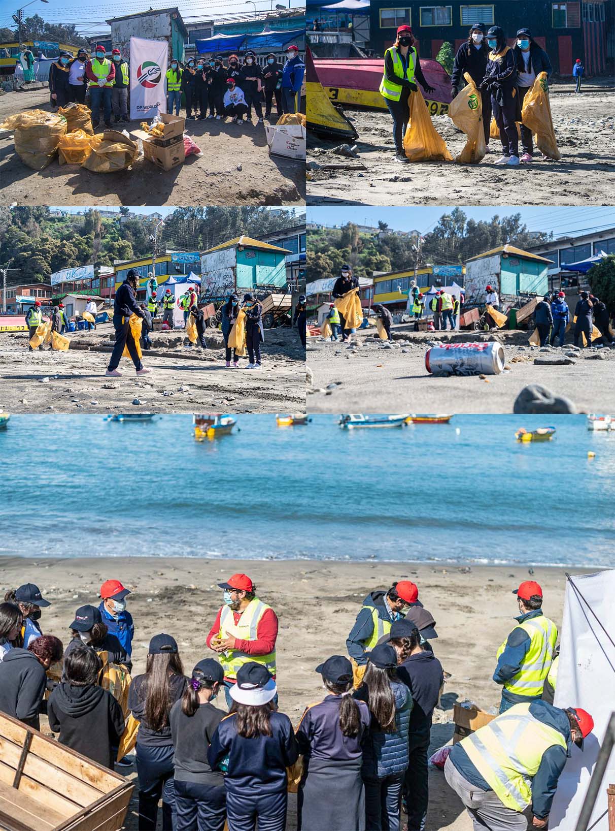 Hoy viernes 24 de septiembre, DP World San Antonio, junto a los alumnos del colegio Fernández León y trabajadores voluntarios, participaron de una limpieza en la playa Pacheco Altamirano.