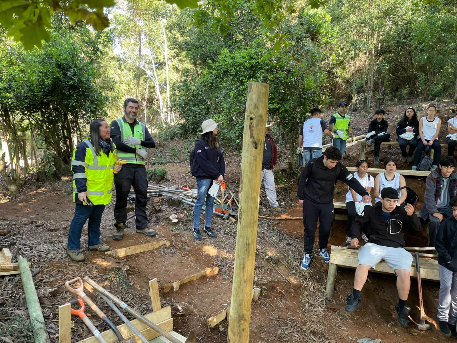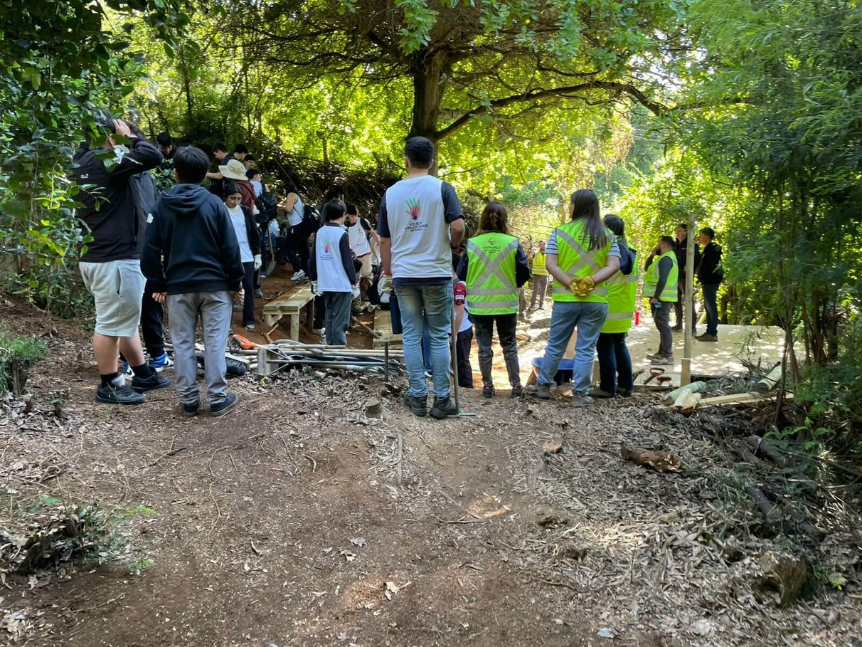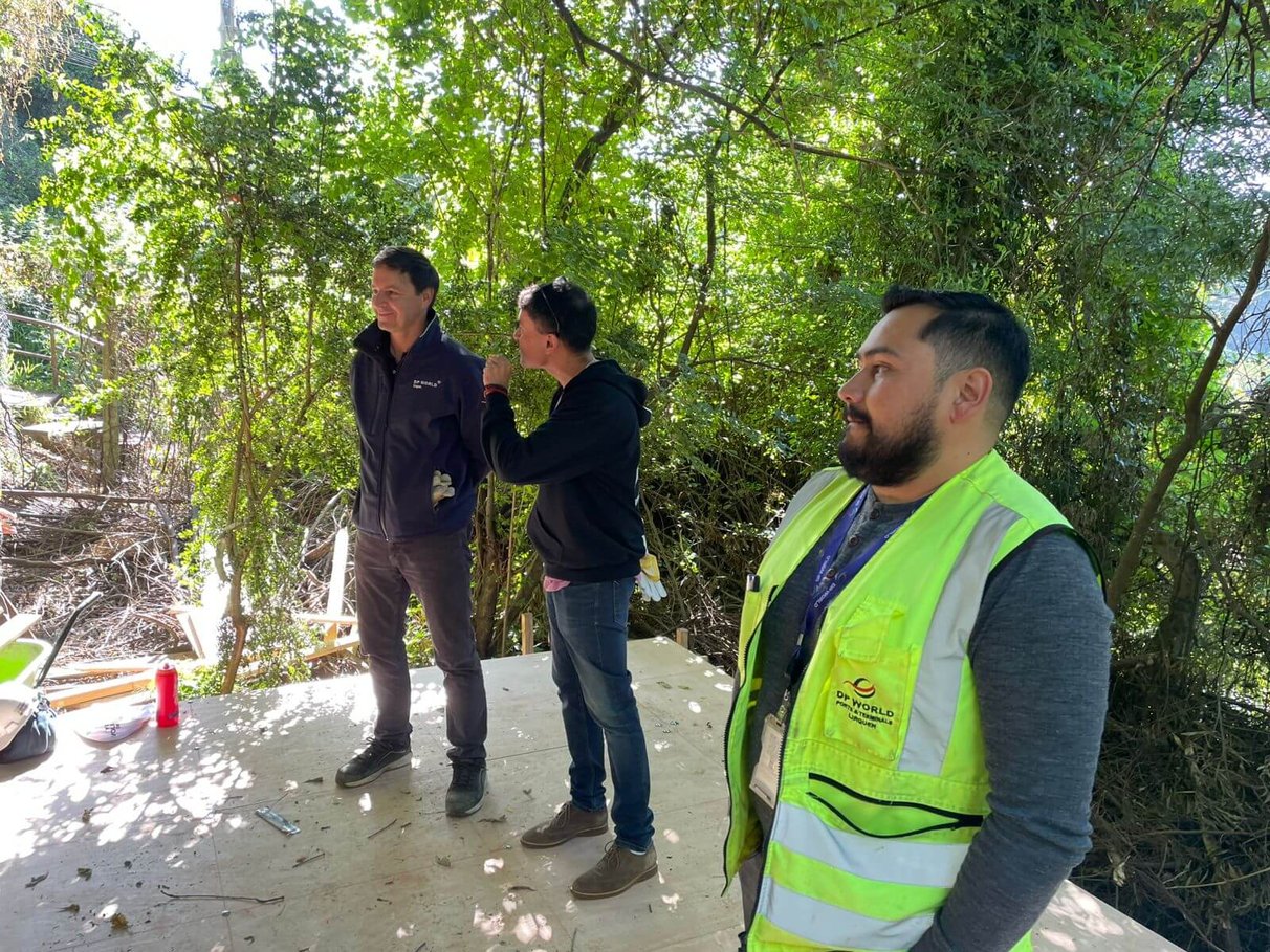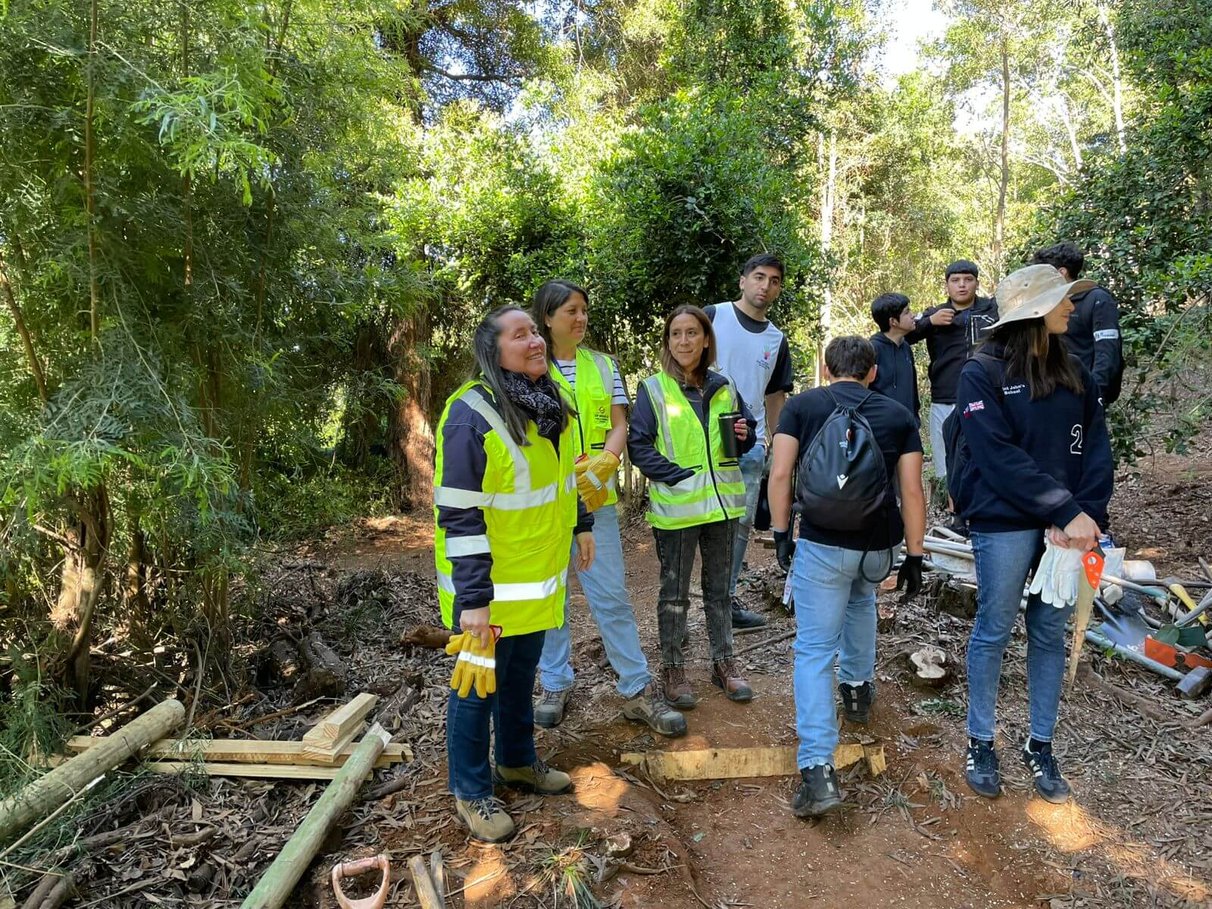 Las primeras jornadas de trabajo, realizadas el 4 y 5 de noviembre de 2025, marcaron el inicio concreto de esta transformación. En ellas participaron estudiantes del Liceo Ríos de Chile, docentes, colaboradores de DP World en Lirquén y estudiantes del Saint John’s School, quienes unieron esfuerzos para dar forma a las obras iniciales del proyecto. Entre las principales tareas desarrolladas estuvieron el movimiento de piedras, habilitación de senderos seguros, limpieza del cerro y la construcción de un anfiteatro natural que será utilizado para actividades artísticas, culturales y de formación integral.