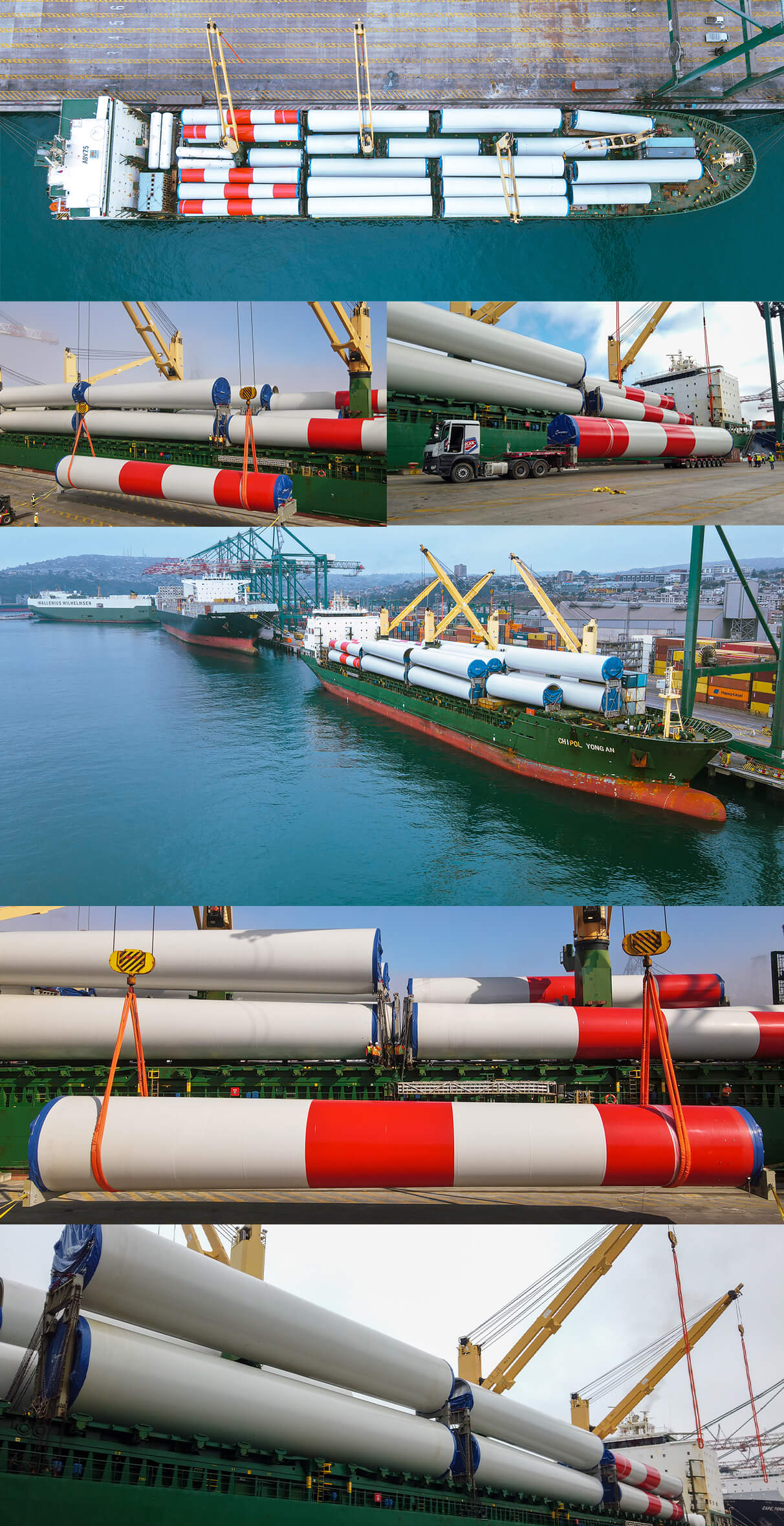 In the letter, the general manager of the Chilean port operator, Juan Alberto Arancibia, explained that "this new unloading of wind turbines confirms our status as the largest multipurpose terminal in the central zone of Chile, with highly qualified personnel, state-of-the-art technology and high standards of safety for people and cargo.