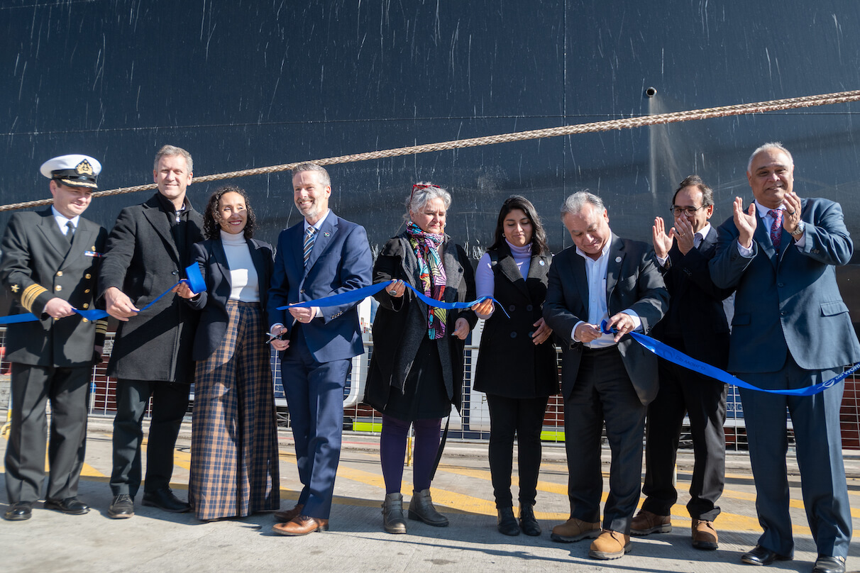 San Antonio (Chile), viernes 28 de junio de 2024.- Hoy en el terminal portuario de DP World en San Antonio, se inauguró “MoorMaster NxG”, un moderno sistema de amarre de buques totalmente automatizado que es único en Chile y en América Latina, y que implicó una inversión de $ 7.000 millones. A la ceremonia asistió el ministro de Transportes y Telecomunicaciones, Juan Carlos Muñoz.