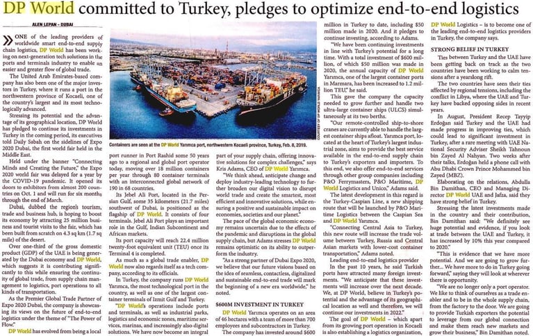 DP WORD COMMITTED TO TURKEY, PLEDGES TO OPTIMIZE END-TO-END LOGISTICS