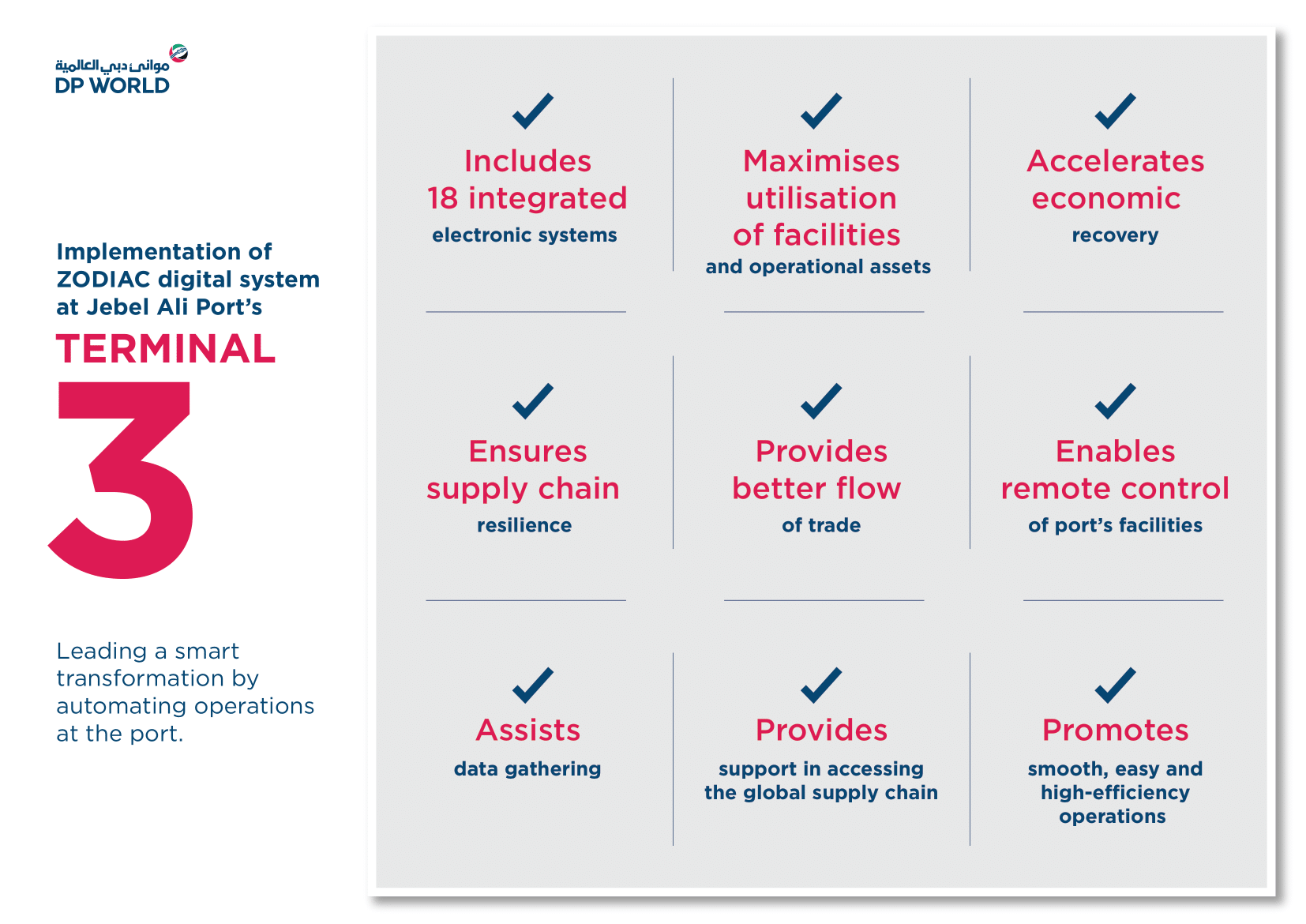 DP WORLD, UAE REGION IMPLEMENTS LOCALLY DEVELOPED ZODIAC SYSTEM IN JEBEL ALI PORT’S TERMINAL 3 TO ENABLE 100% AUTOMATION OF FACILITIES