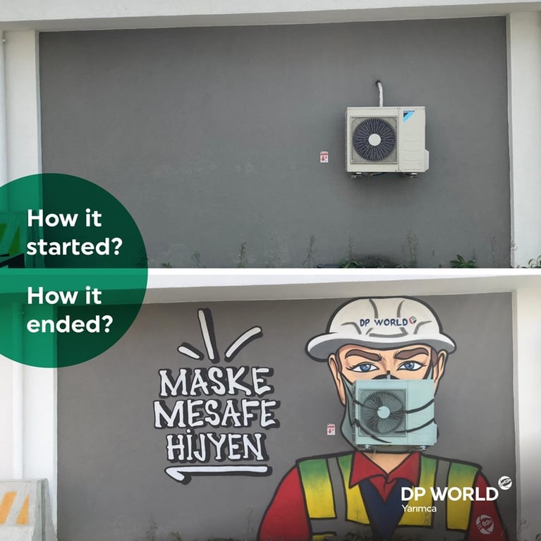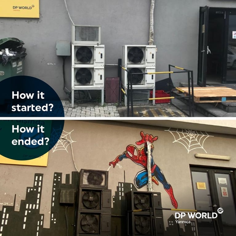 Ports have a cold structure where concrete and iron is predominant. To make this scene which is constructed by cranes and field equipment more aesthetic, an important project was signed. One of the firsts in the world was realized at DP World Yarımca Port, and graffities were drawn with an artistic touch on the places with the appearance of gray concrete in the terminal.The project which was initiated to make the work environment more enjoyable, took two weeks in total.