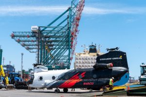 DP World San Antonio descarga 5 helicópteros arribando en la nave ARC Resolve de la línea Wallenius durante el primer turno de este sábado.