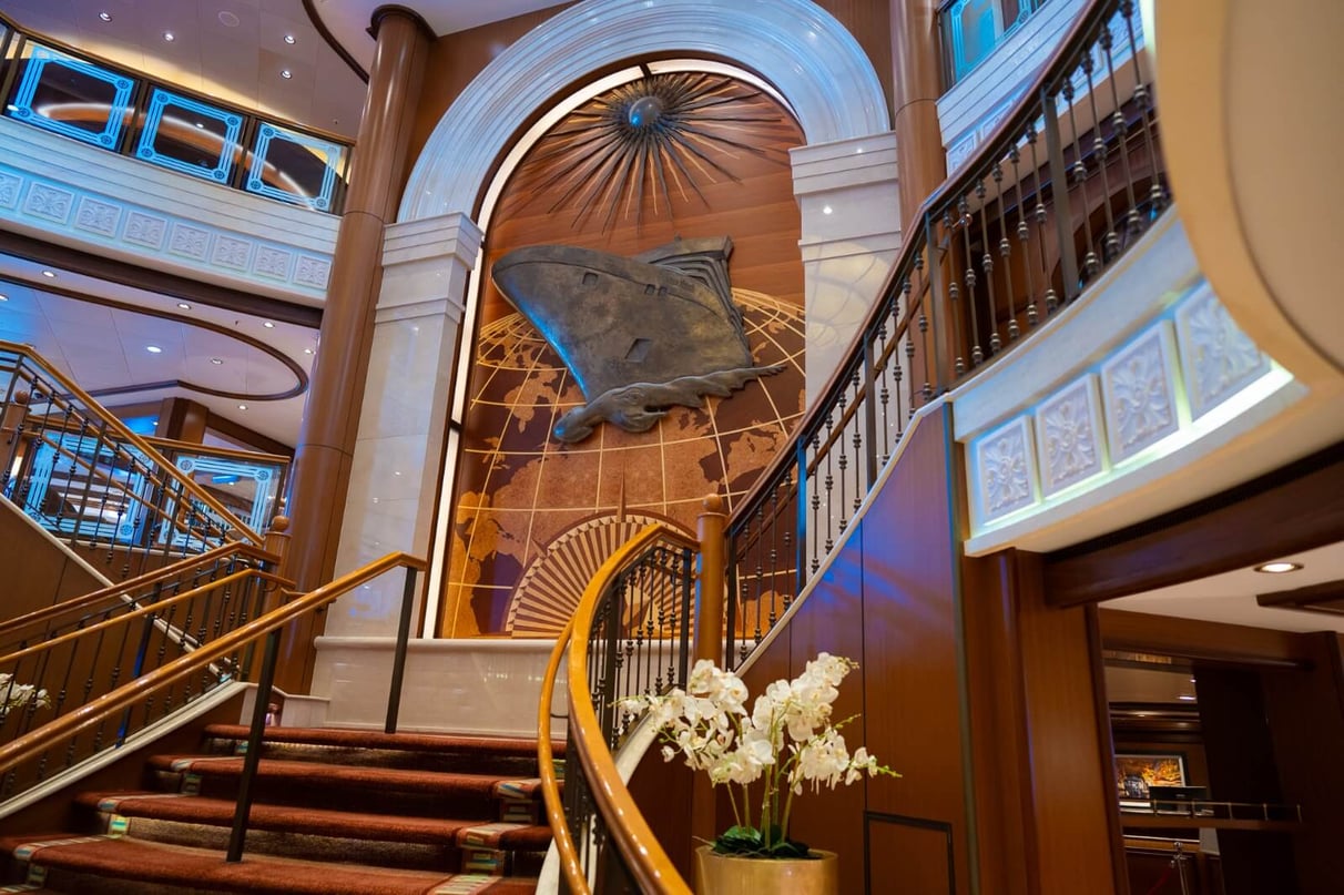 El teatro del "Queen Victoria” es el primero en un barco en tener palcos privados. También tiene un jardín interior con un techo de cristal retráctil y una biblioteca de dos pisos con una escalera de caracol y más de 6 mil volúmenes en diferentes idiomas.