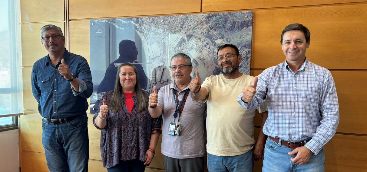 De izquierda a derecha: Juan Carlos Quezada, Claudia Flores, Alejandro Albornoz, Franklin Gutiérrez y Michael Spoerer, Gerente General de DP World en Lirquén.