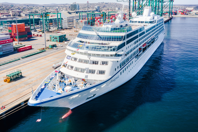 MV Insignia proveniente de Coquimbo, atraco por primera vez en el puerto de DP World San Antonio la madrugada del día 17 de febrero , la nave de 181 metros de eslora y 25 metros de manga, desembarco 205 pasajeros, embarco 228 pasajeros y 405 pasajeros estuvieron en tránsito en la ciudad de san Antonio.