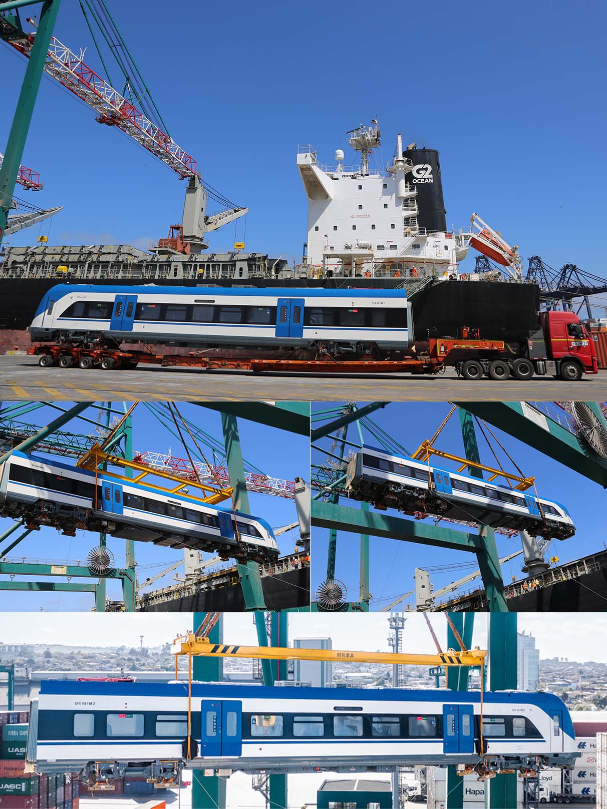 La operación de descarga fue realizada con éxito por el terminal multipropósito DP World San Antonio, en donde se utilizó una grúa STS para posicionar los carros sobre camiones, los cuales transportaron la carga al sector de emplazamiento en las líneas férreas, para lo cual se utilizó una grúa móvil.