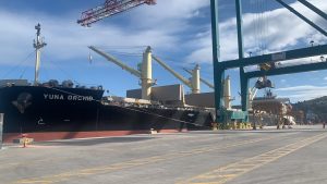 La segunda recalada de Graneles de Chile fue con la nave YUNA ORCHID que durante esta semana se encontrara descargado un total de 32.000 toneladas de Maiz y Soya en el sitio Costanera 2 permitiendo utilizar las grúas STS logrando mejores rendimientos.