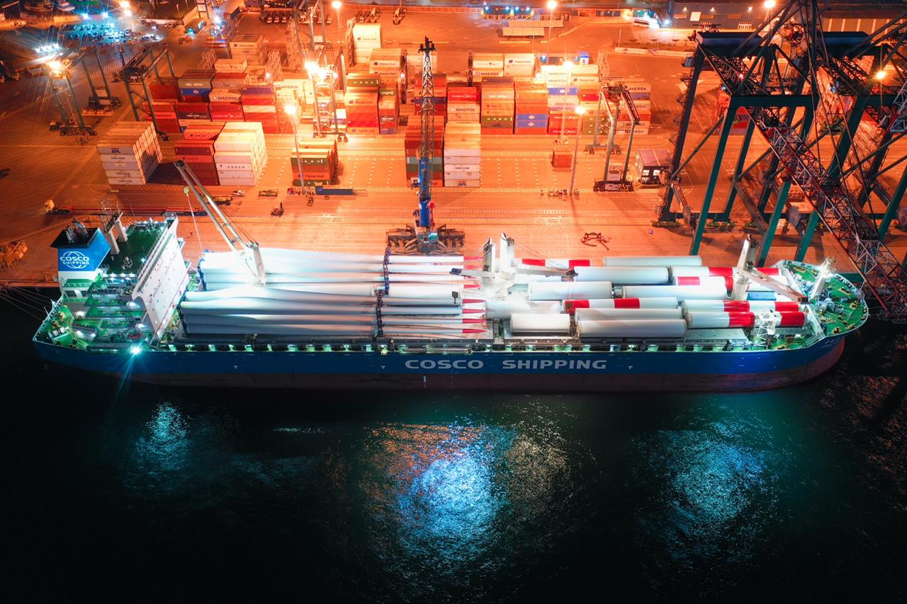 Hoy durante el primer turno, se inició la descarga de las primeras 6 torres eólicas que llegaron al terminal DP World San Antonio a bordo de la Motonave JIN XIL de 201 metros de eslora.