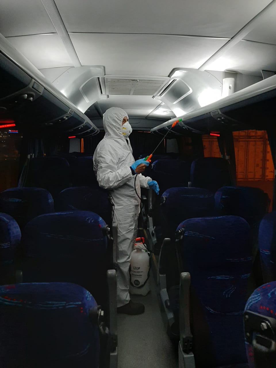 Los buses para el transporte de trabajadores se desinfectan al inicio y termino de cada turno.