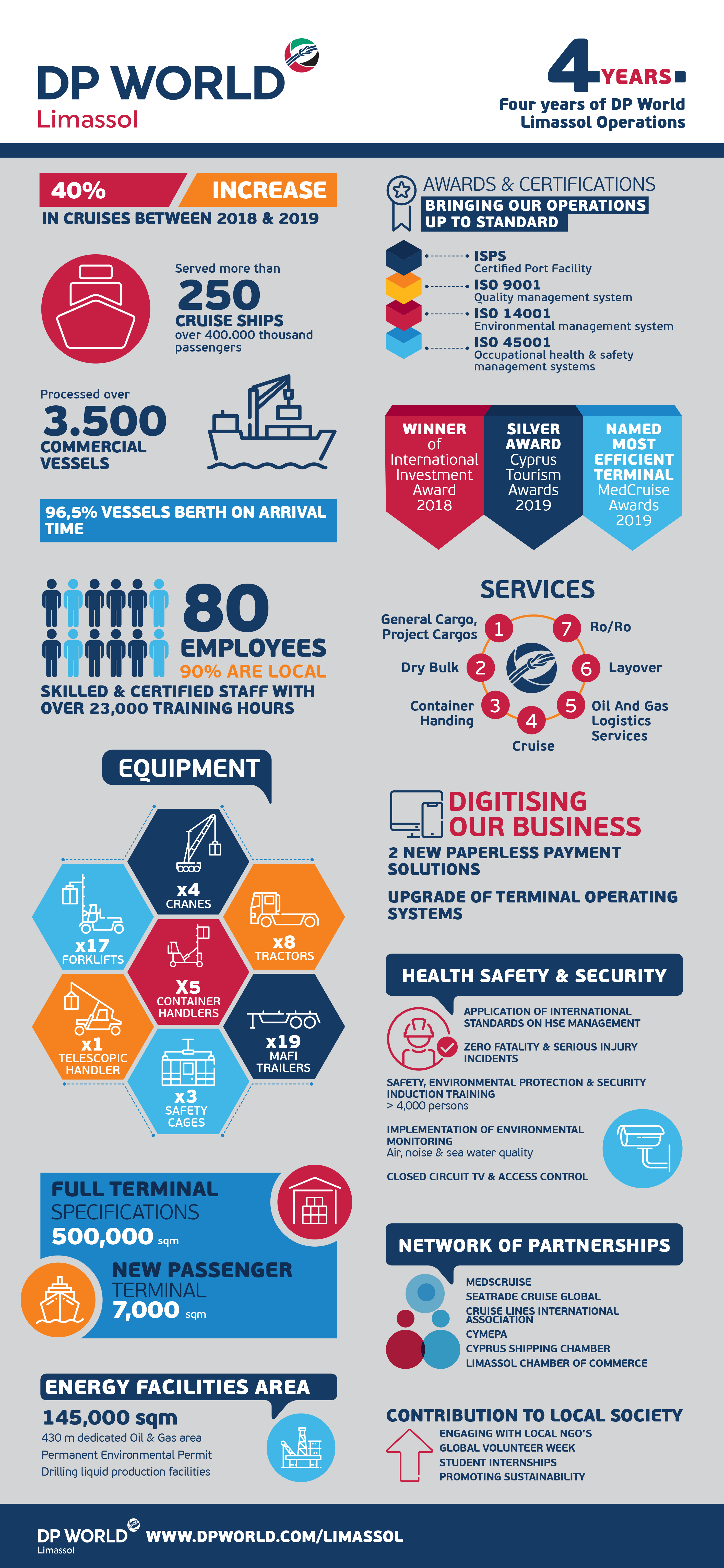 Commenting on the occasion of the anniversary, the Company’s CEO, Nawaf Abdulla, said: “DP World Limassol has produced impeccable results over the past four years. We are proud to have been chosen to operate this crucial port for the region and we strive every day to