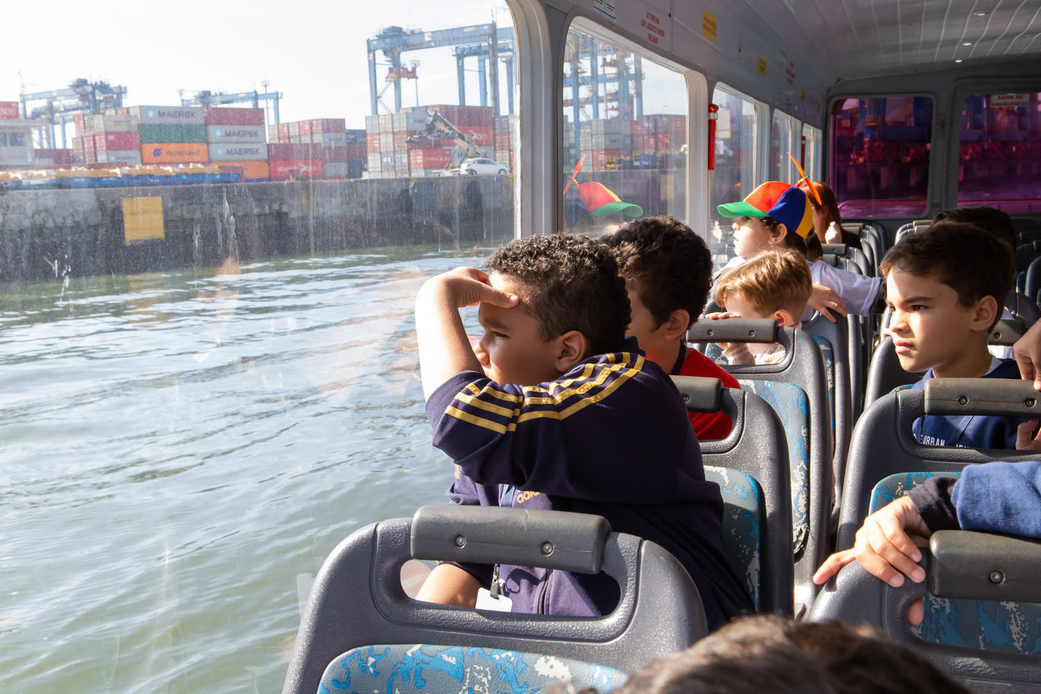 Os pequenos fazem ainda um tour de Catamarã (transporte marítimo utilizado pelos funcionários da empresa) pelo canal do estuário que integra o complexo do Porto de Santos para uma aula de história sobre o maior Porto da América Latina. Neste momento, eles conhecem um pouco da fauna, flora e dos manguezais que compõem o ecossistema da região.