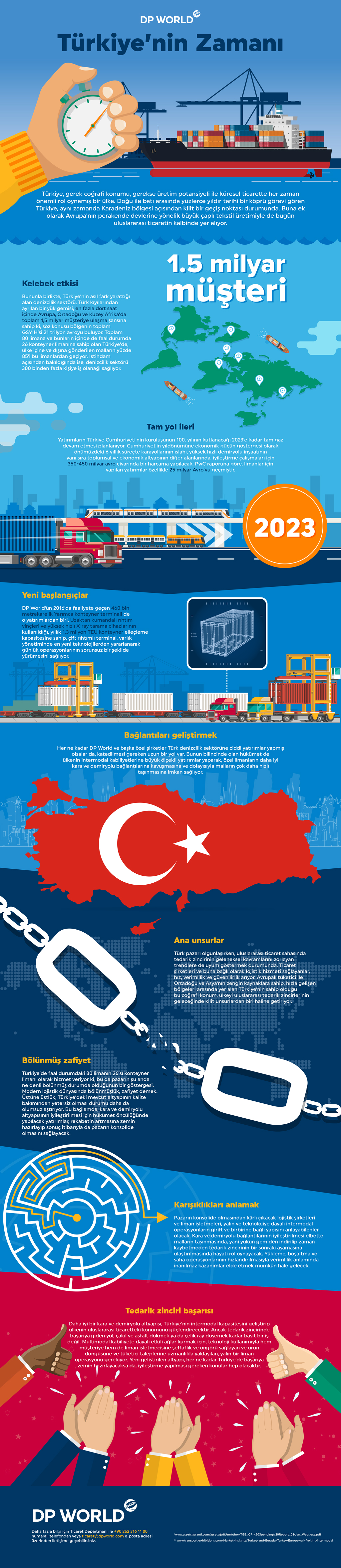 Her ne kadar DP World ve başka özel şirketler Türk denizcilik sektörüne ciddi yatırımlar yapmış olsalar da, daha katedilmesi gereken uzun bir yol var. Bunun bilincinde olan hükümet de ülkenin intermodal kabiliyetlerine büyük ölçekli yatırımlar yaparak, özel limanların daha iyi kara ve demiryolu bağlantılarına kavuşmasına ve dolayısıyla malların çok daha hızlı taşınmasına imkan sağlıyor. Bu yatırımların, sektörün mevcut liman kapasitesinden daha iyi yararlanmasını sağlamanın yanında, Hazar Denizi üzerinden Çin'e bağlanan yeni İpek Yolu gibi bölgedeki diğer önemli altyapı çalışmalarına da katkısı olacak.