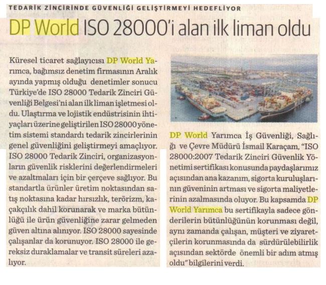 DP World ISO 28000'i alan ilk liman oldu